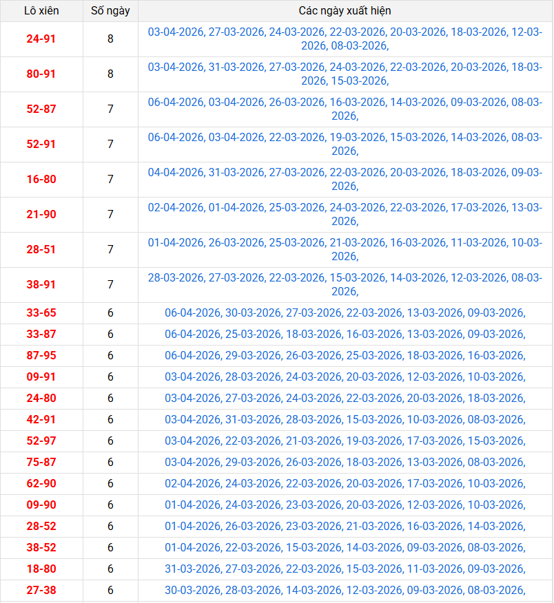 Thống kê miền bắc chính xác nhất ngày 07/04/2026