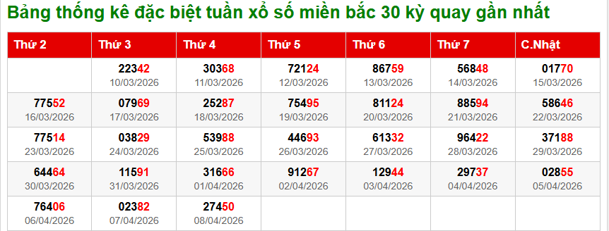 Thống kê giải đặc biệt XSMB 30 kỳ quay gần nhất