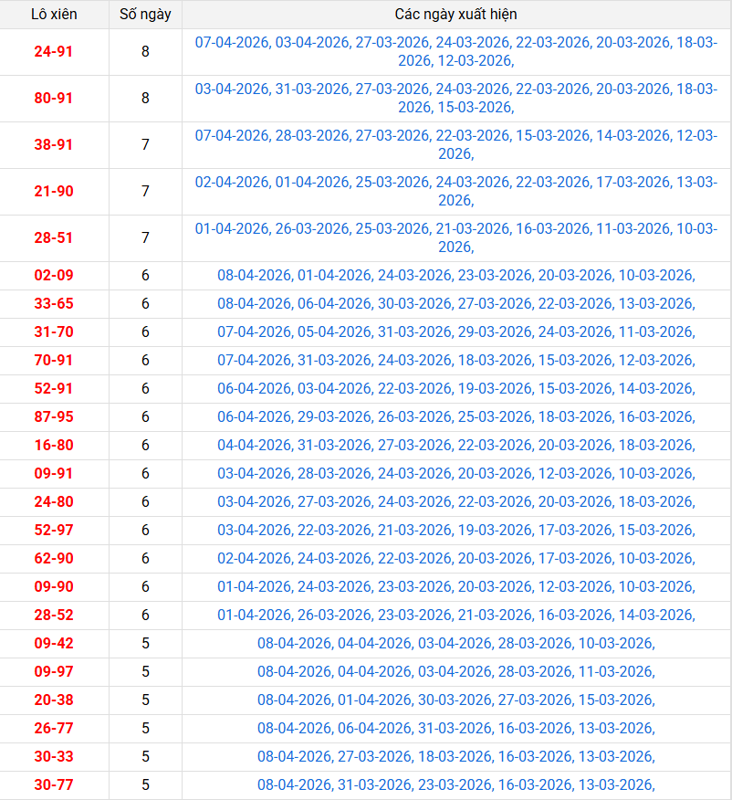 Thống kê miền bắc chính xác nhất ngày 09/04/2026