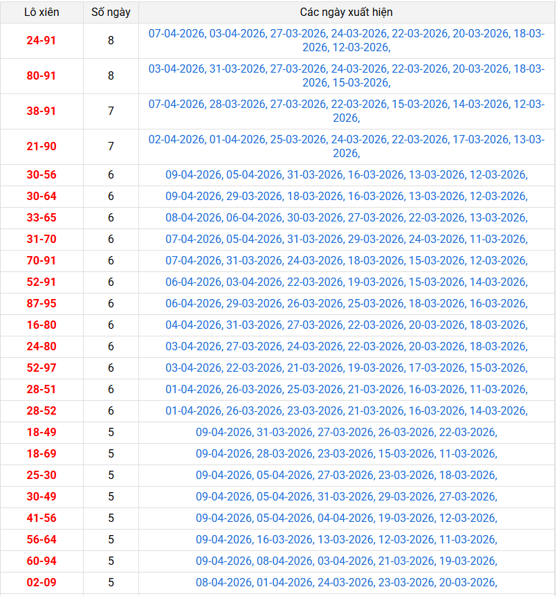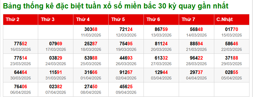 Thống kê miền bắc chính xác nhất ngày 10/04/2026