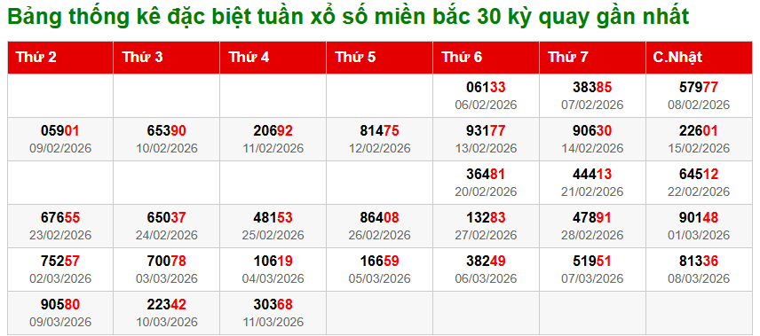 Thống kê giải đặc biệt XSMB 30 kỳ quay gần nhất