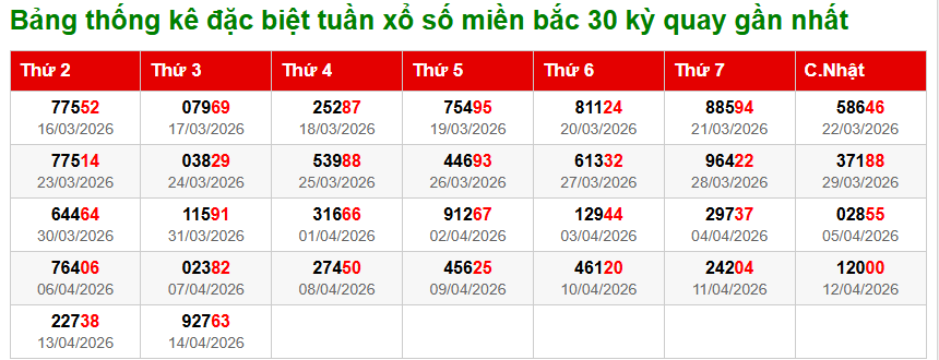 Thống kê giải đặc biệt XSMB 30 kỳ quay gần nhất